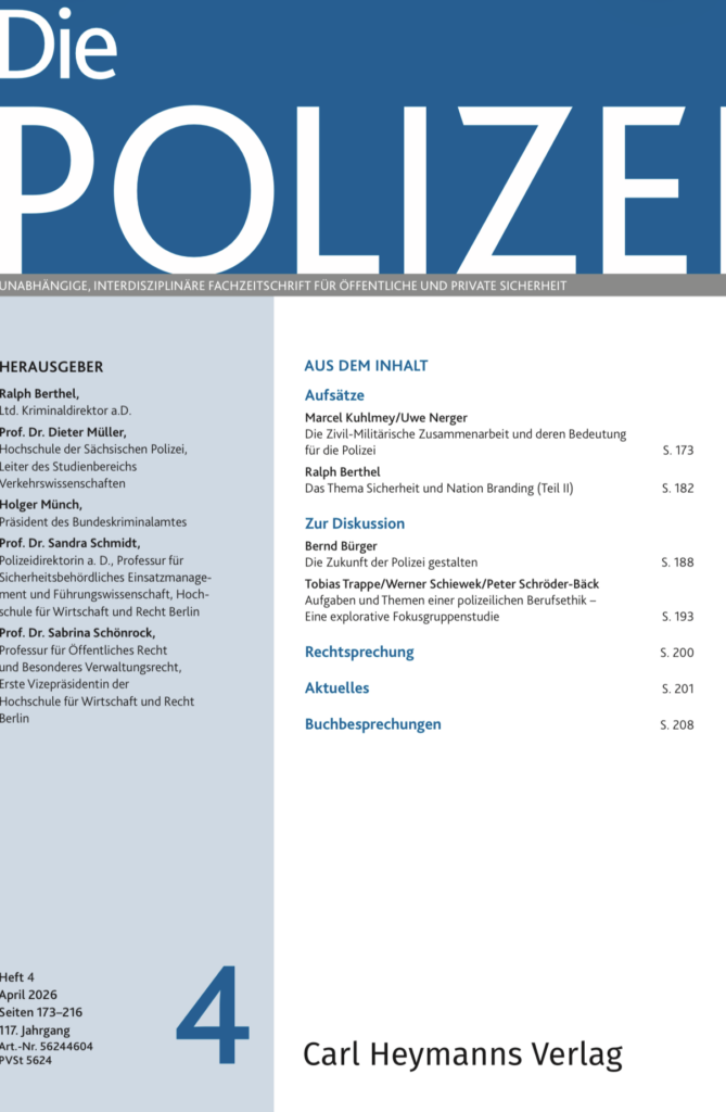 Den vollständigen Artikel finden Sie in Die POLIZEI, Heft 4/2026, erschienen im Carl Heymanns Verlag.