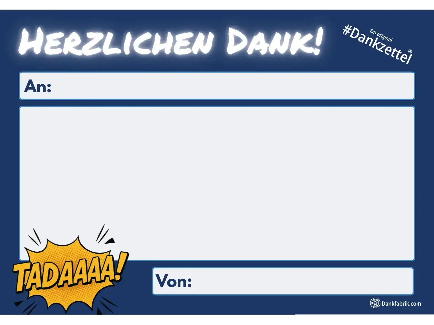 I have therefore developed the idea further and designed large thank you notes®. The team leader can either fill them out and summarize the contents of the thank you letter, or you can send the sender a selection of cards as a PDF and ask them to fill them out by hand. This makes the thank you wall even more personal. Then all you need is a nice place in the lounge, ideally a whiteboard with a few casual magnets, and you're ready to go - with the visualization of successes.